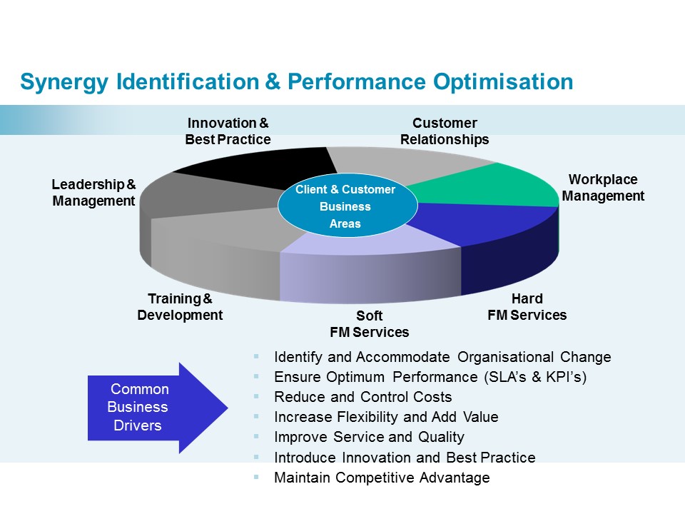 Whether Facilities Management is core or non-core to your business Optimum FM will ensure your and/or your customers property, facilities and assets are aligned to the business in the most efficient and economical way that will maximise Value for Money and customer satisfaction. To do this we will address the three questions above against your business strategy within your market sector.